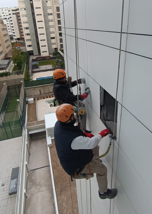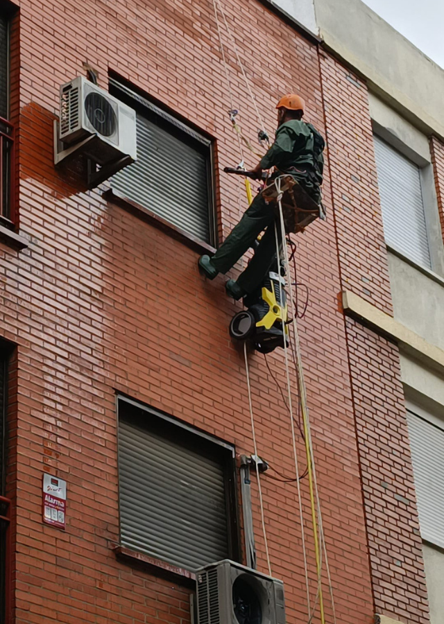 Somos especialistas en trabajos en altura, tanto con sistemas tradicionales (andamios certificados) como mediante técnicas de acceso vertical con cuerdas (sin andamios). Nuestra experiencia, equipo profesional y cumplimiento normativo nos permiten ofrecer soluciones seguras, rápidas y eficientes en todo tipo de edificaciones.